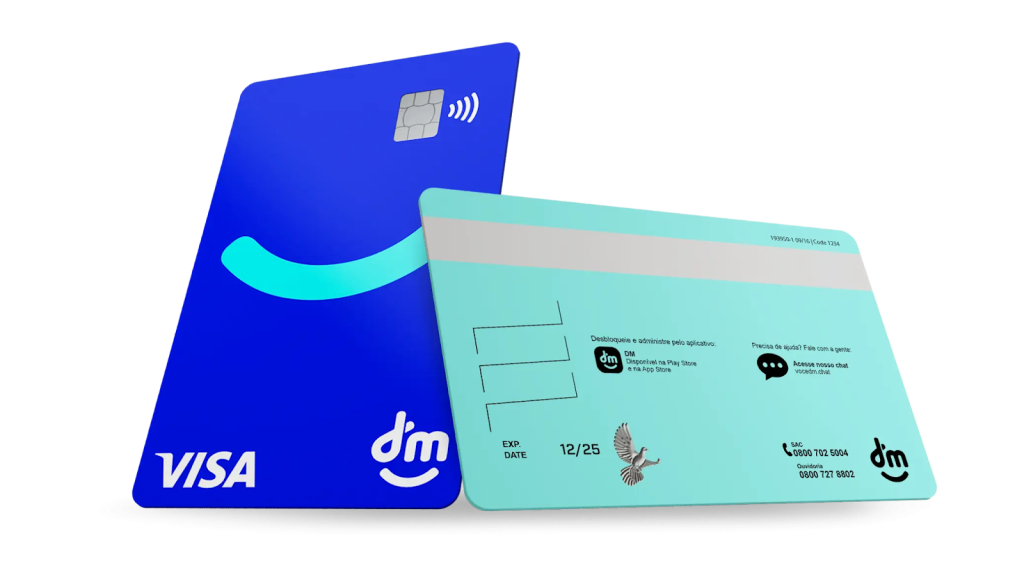 O cartão DM Visa aposta em uma abordagem mais tradicional, mas cheia de conveniências. Ele é um cartão de crédito com bandeira Visa, que cobra uma mensalidade de R$ 14,90 e está sujeito à análise de crédito. Emitido pela DM Instituição de Pagamento S.A., o cartão funciona muito bem para quem busca fazer compras no Brasil e também quer uma porta de entrada para aquisições internacionais. Ele possui chip, tecnologia por aproximação e um aplicativo completo para o gerenciamento das finanças.